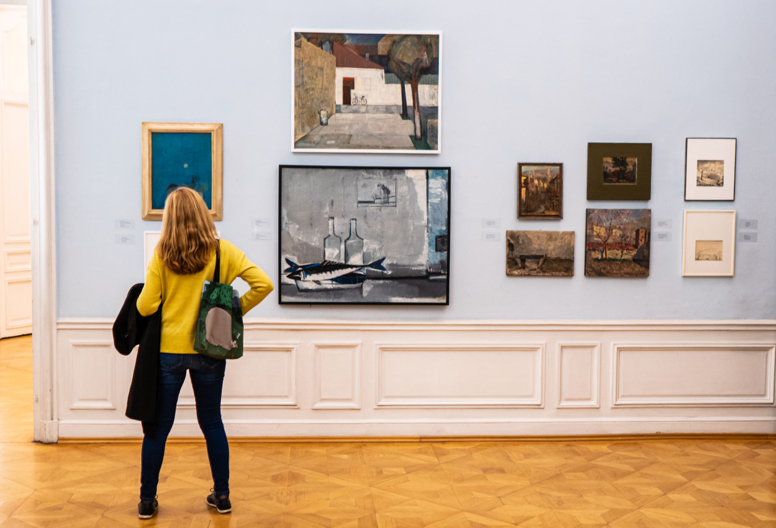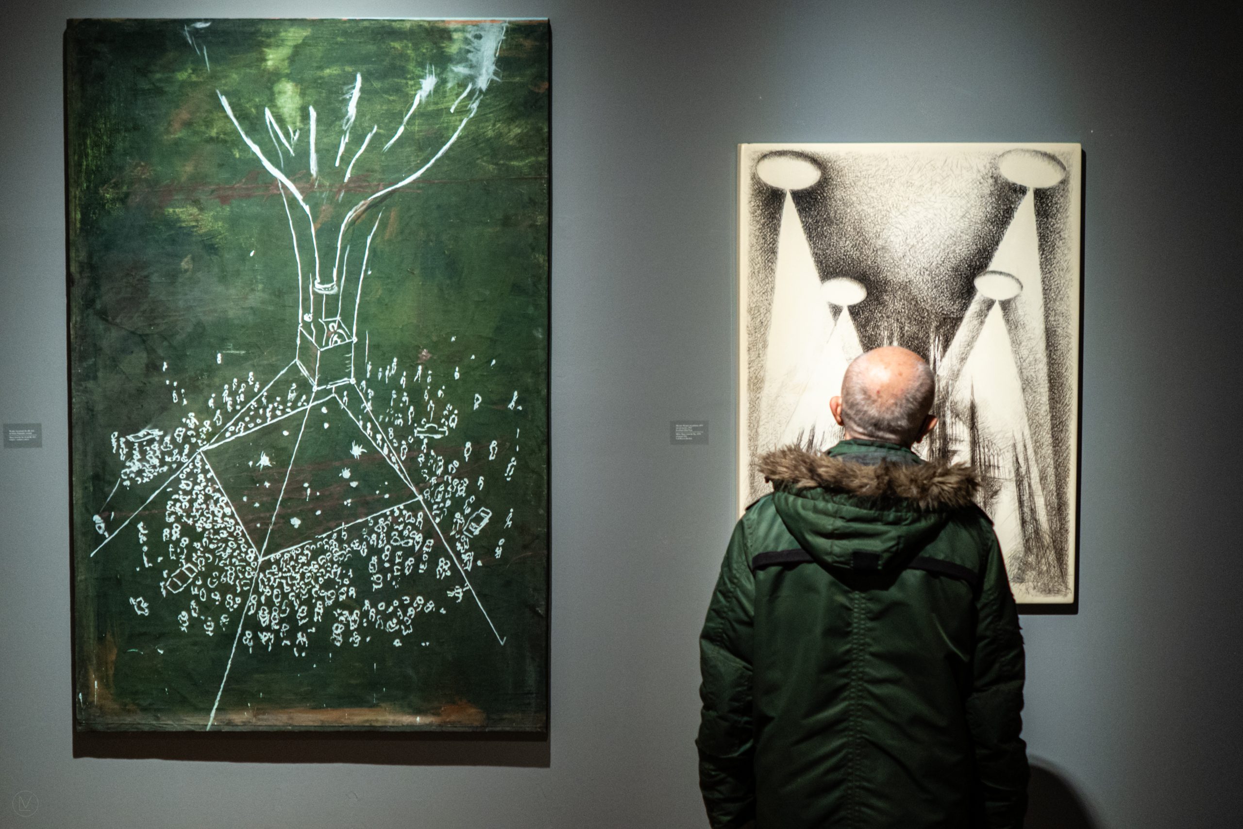 Тази есен трима български артисти, избягали от България в младежките си години и впоследствие получили международно признание, се „завърнаха“ с изложби в софийските галерии – Кристо, Алцек Мишев и Васил Симитчиев. Не знам дали това е обмислена стратегия или чисто съвпадение, но измежду тримата Алцек Мишев е най-непознатият на родната публика беглец и съответно запознанството с него е може би най-вълнуващо. Всъщност първата среща с него беше през 2019 г. със сравнително скромната му изложба „Най-новите малки картини на плувеца“ в Swimming Pool, но пък тя се оказа повод за голямата ретроспективна изложба в Двореца тази година. Неслучайно подзаглавието ѝ е „Голямото завръщане“ – усещането е подобно на това човек да разбере, че има далечен братовчед в Италия, който между другото се оказва и международно признат артист. Впрочем художникът носи името на хан Алцек, най-малкия син на хан Кубрат, който през VII век се заселва в италианските земи и живее в района на Милано, където се установява и Алцек Мишев.