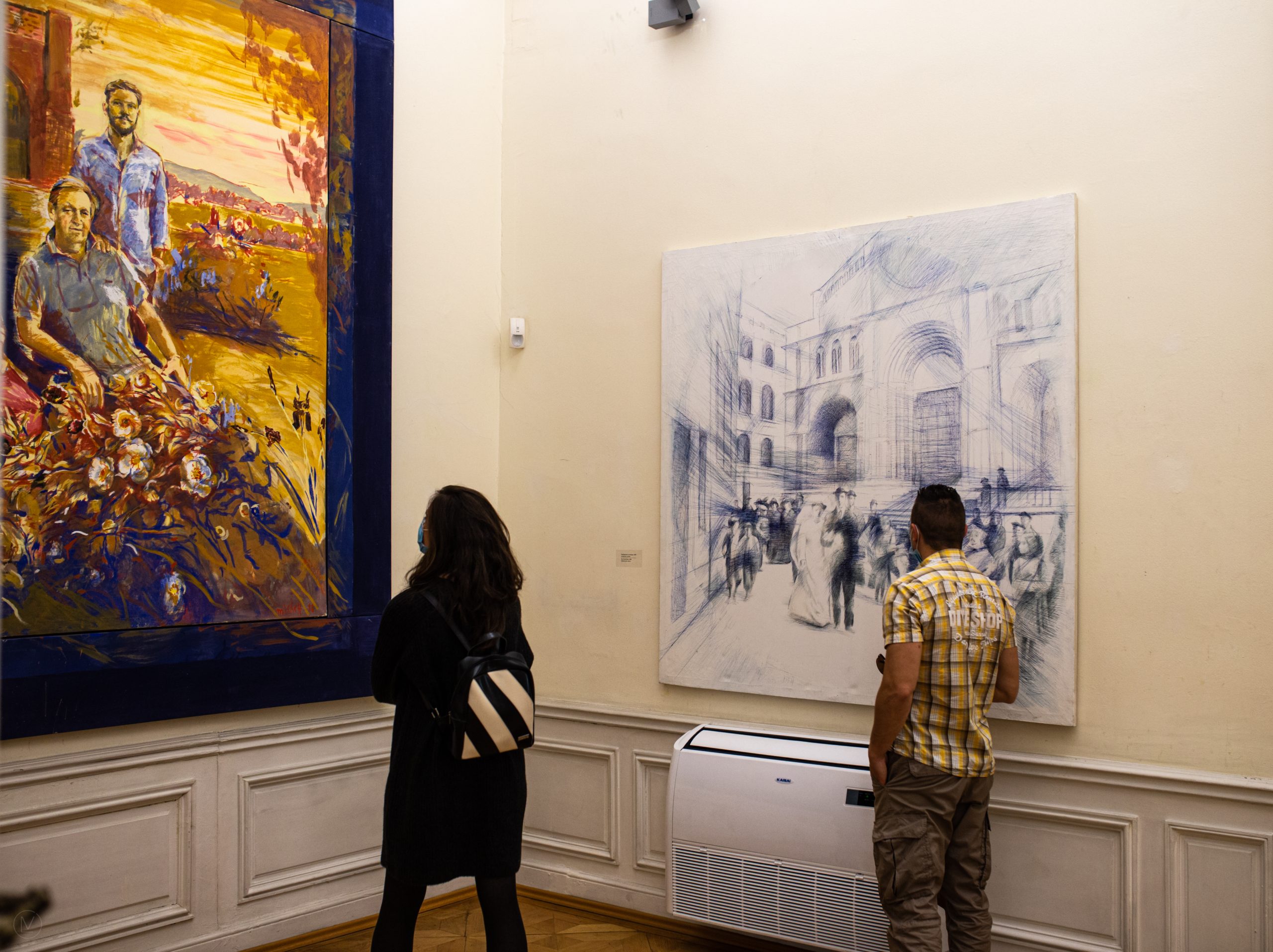 Това съвсем не е биография на живописец традиционалист, но точно за такъв се приема Алцек Мишев. Въпреки своите „лъжи“ в областта на перформативното той е чужд на типичните за модернизма предметности или нови авангардни течения. Определя се като реакционер и противник на модернизма с неговата опростена безсюжетност и не вярва в свободата на автора, тъй като тя винаги е зависима от пазара. Водеща за него си остава живописта. Затова рисува, при това със завидна продуктивност, върху мащабни платна. Експозицията в Националната художествена галерия включва над 140 произведения, разположени на двата ѝ етажа. Една истинска ретроспекция, в която забележителното е, че откриваме доста картини от 2021 г., в които изплуват традиционните за неговата митология плувци, кораби, контейнери, музикални балони, пиана. Разбира се, сред творбите от последните години има и типични за един живописец семейни портрети, лица на близки хора, пейзажи, както и огромните полски концерти под лозята. Някои от тях са рисувани със син камък и вердигрис, а други с химикал, като например трите композиции на тема Covid. Въобще Алцек Мишев е мащабен художник в широкия смисъл на думата, но не бих го нарекъл ренесансов по дух, най-малкото защото самият той не харесва Ренесанса, свърза го с демиургично-демоничното начало в художника. И все пак удивително е как на тази изложба можеш лесно да напускаш рамката на платното, за да преплуваш океана, да летиш с плавници или балон, да съзерцаваш сирените на По или пък да слушаш концерт. Направо неприлична лекота на битието. Тук се предавам – Алцек Мишев вече е здраво стъпил на земята живописец традиционалист, след като е отрязал своите криле, обвинявайки ги в модернизъм.