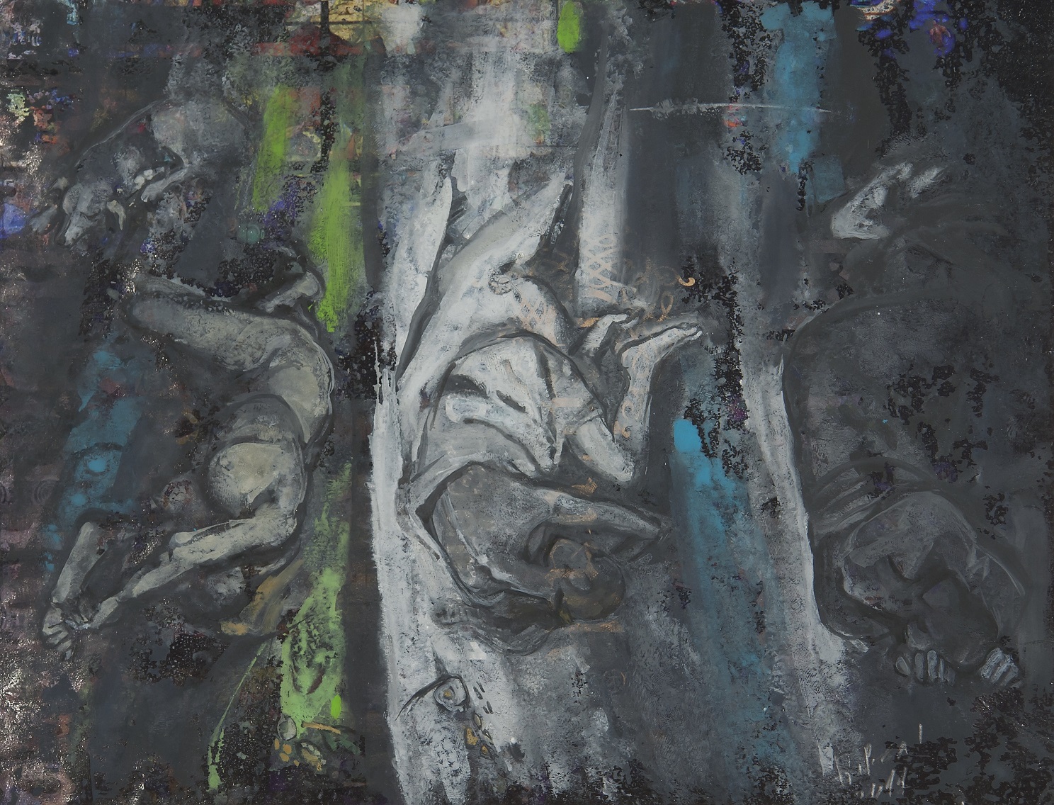 В сънищата става размиване на границите, състояние, в което реалността и фикцията разменят местата си. Сънят е отражението, а то – същността на нещата, материализиране на желанието, на бягството, неудовлетворението и мимолетността. В експозицията силно застъпени са колажите, именно в качеството им на овеществена преходност. Преходните абстрактни отражения, макар и цветни, са ефимерните същности на застиналите спящи фигури, материално изразени в живописта.. Но спираме описанието дотук, защото няма – „..никакво спасение във думите!“ (Хр. Фотев)