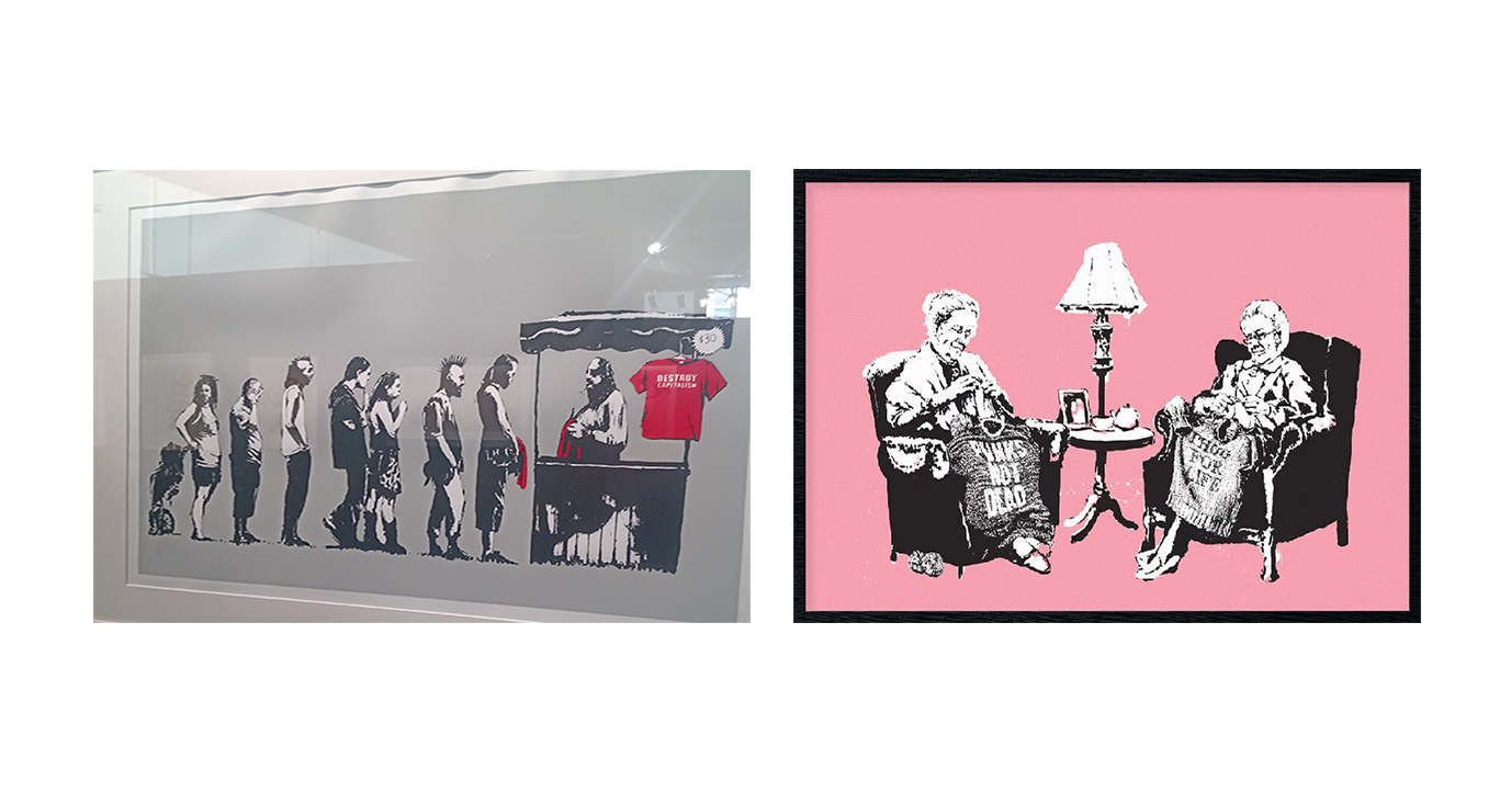Дадох си сметка, че търся красота, стил и естетика, защото изложбата ме задължаваше да правя това – вкарваше ме в ролята на съзерцател. Нещо – или може би няколко неща? – обаче убягваха на тази роля, а липсваха и в изложбата. Първото го установих бързо: имената, авторските лица на кураторите и организатори. Кои бяха тези хора? Разбрах само това, което вече знаех – че изложбата е направена от „частна колекция“ на творби на Банкси, а основанието да се организира, макар и unauthorised, е благородно: желанието на организаторите да покажат творбите на Банкси на такива като мен, обикновени зрители, които иначе няма да ги видят. Просвета.