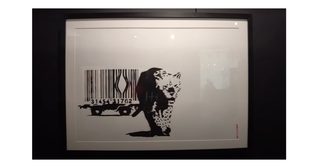 Впрочем, най-интересното беше, че при цялата си семплост изложбата беше иронично-саморефлексивна в това отношение. Тя не се беше посвенила да покаже – отново зад рамка и стъкло – тъкмо тази комерсиално-рекламна трансформация на тигъра Банкси и дори, използвайки стария виц, да се присмее сама на себе си.