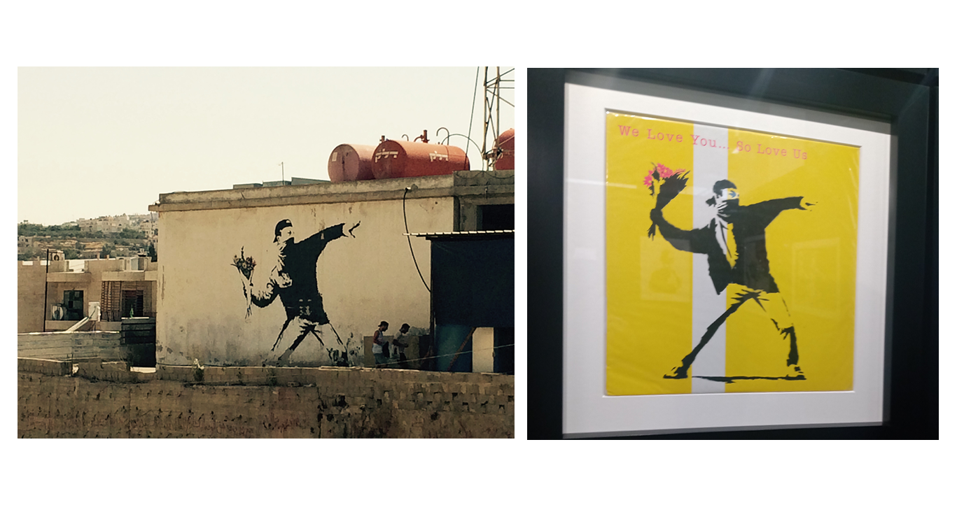 Така че от ето графита през 2005 г. в Палестина (вляво) през 2023 г. в Манхатън беше останало ето това (вдясно):