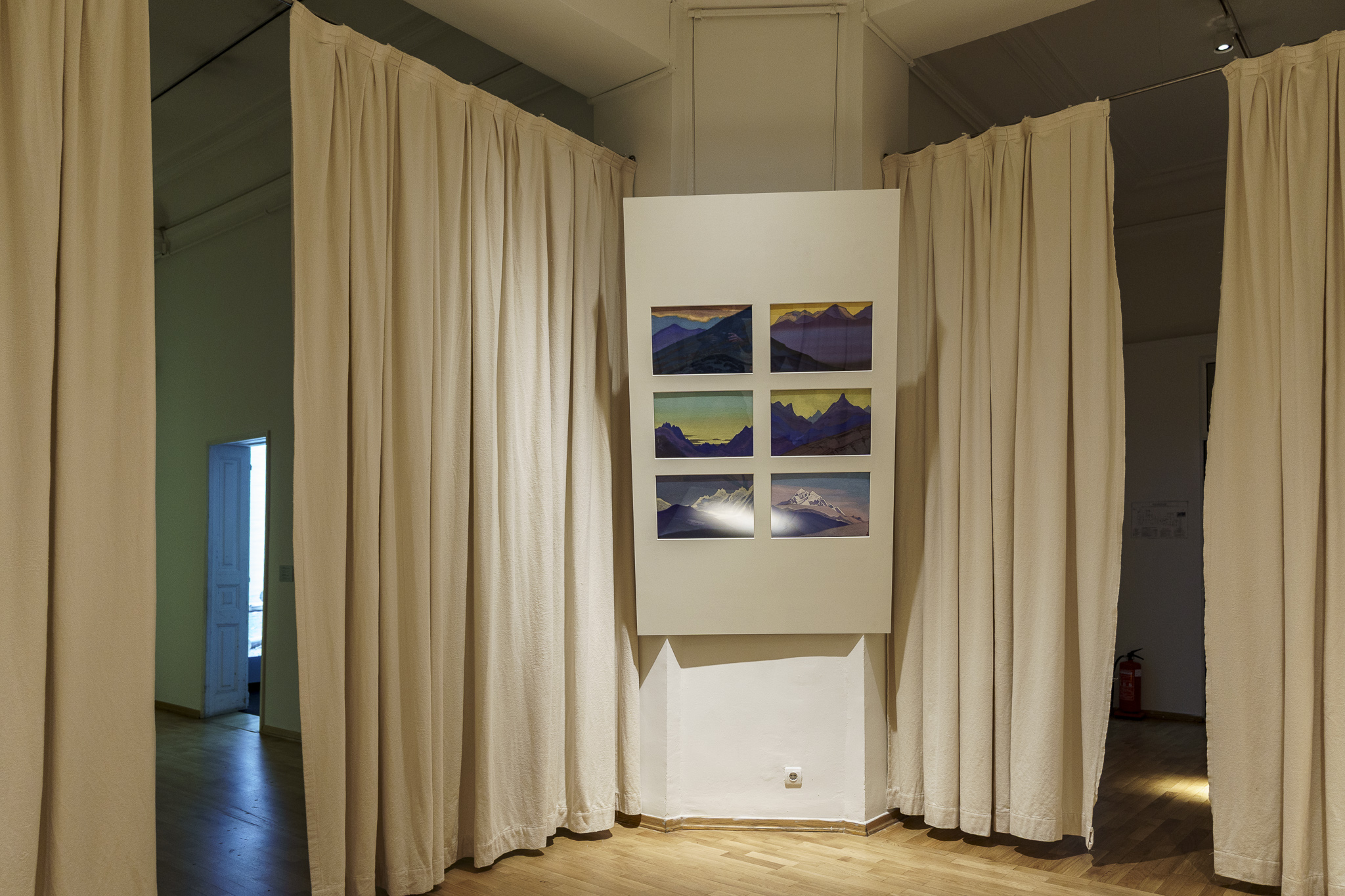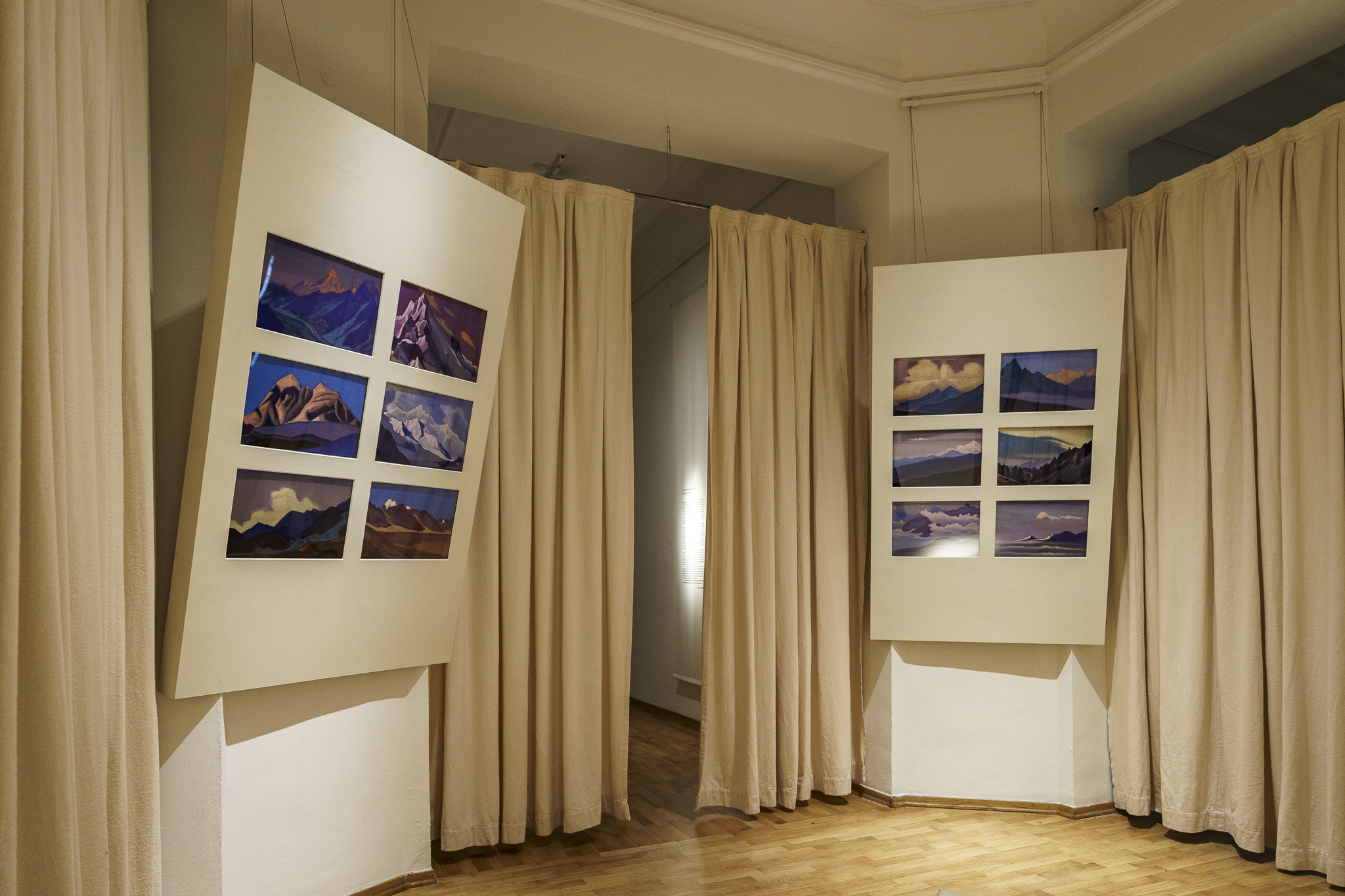 В една от залите на изложбата са поставени акварели от Николай Рьорих. Каква е ролята на тези картини в изложбата и към какво препращат?