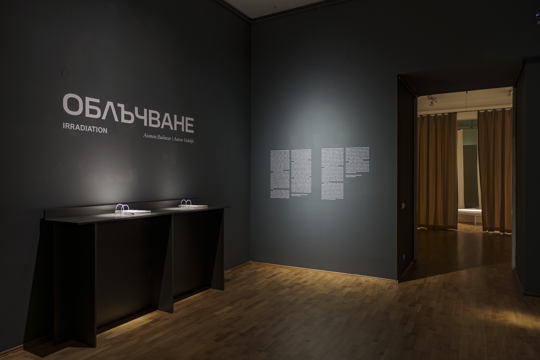 На 23 октомври тази година се състоя откриването на изложбата Облъчване на Антон Видокле в Националната галерия – Двореца. Антон Видокле е един от най-известните съвременни артисти от т.нар. „Изток“, основател на платформата e-flux, разрастваща се активно от 1998 г. насам. Той взима участие в множество международни форуми като отмененото шесто издание на Манифеста, предвидено да се случи в Никозия (Кипър), и реализирания вместо това Unitednatiosplaza[1] [Площад на обединените нации] – дискурсивна платформа за идеи, изкуство и теория. Друг знаков проект, пряко свързан с представения в София, е Изкуство без смърт: руският космизъм (2017, HKW).[2] Съвсем наскоро Видокле беше един от тримата куратори на XIII биенале в Сеул Сеанс: Технология на духа,[3] а скоро след откриването на биеналето публикува текста Смърт, изкуство и духовност.[4]