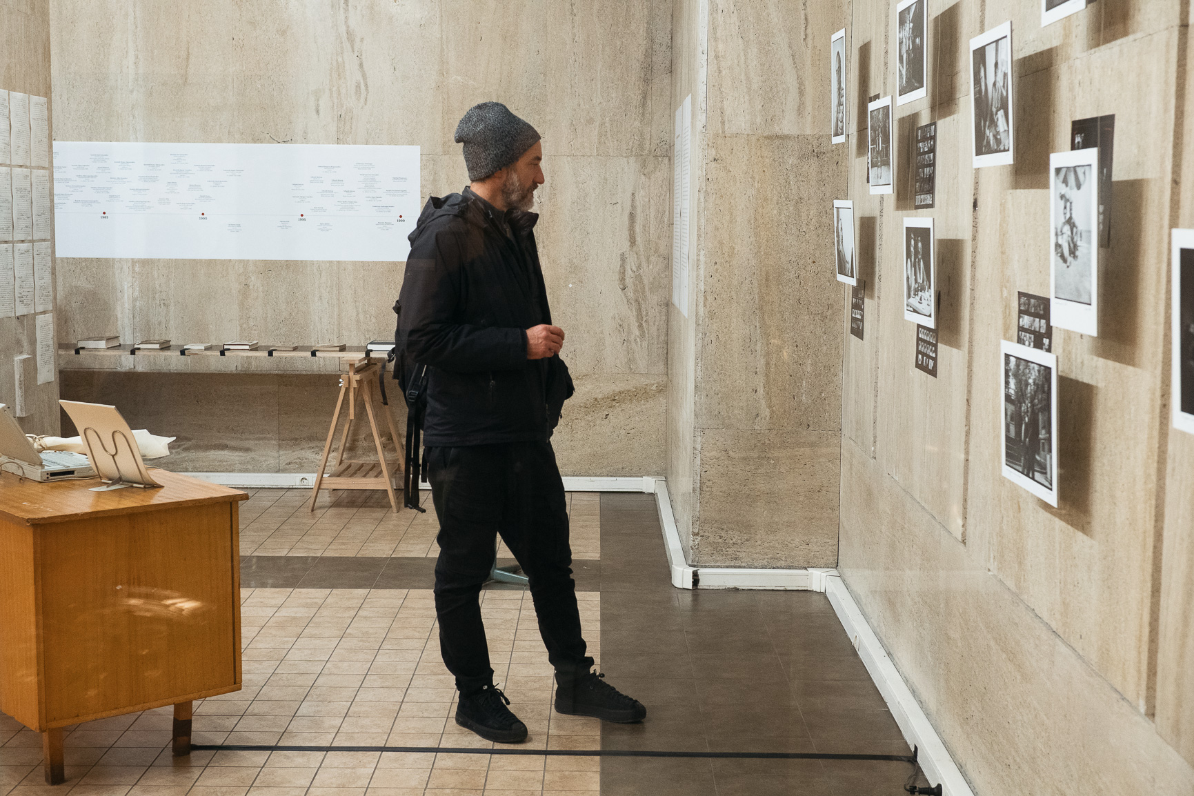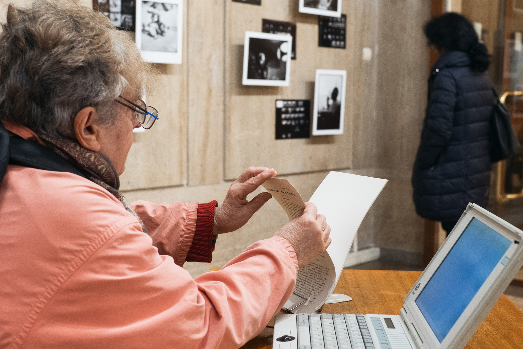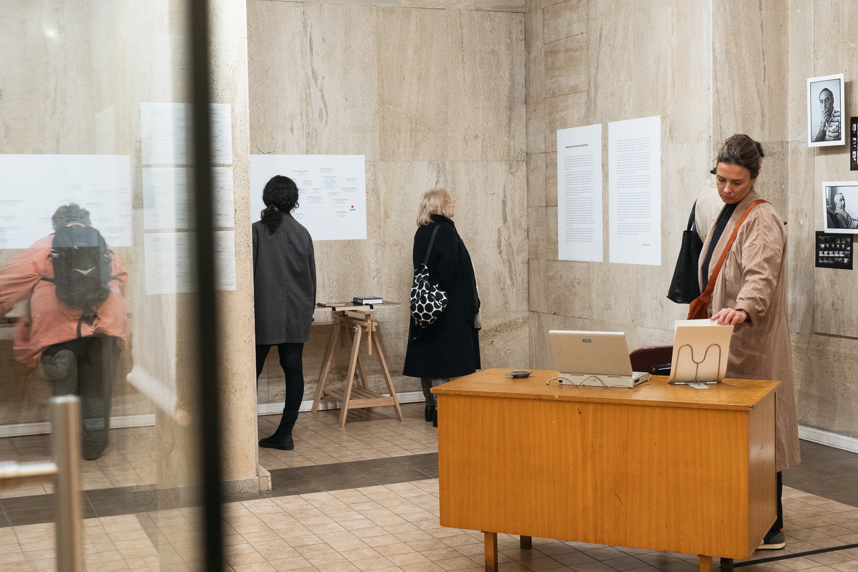 Всъщност този пръв поглед върху изложбата – сбирка на отделни артефакти, които можем да припишем на преводачеството и в конкретния случай на Мисирков, не разкриват нищо, което да разкаже или въведе посетителя в живота на преводача или неговите преводи. Съвсем съзнателно за момент отлагам да спомена звуковата инсталация от откъси на преводи, както и втората колона в залата, върху която са залепени копия от преводаческите коректури на „Спомени за мъките на немотата“ от Юрий Трифонов. Не засягам все още тези може би най-важни елементи в сбирката, защото съвсем лесно те могат да бъдат пропуснати от всеки преминаващ, както впрочем и самата юбилейна изложба, която, уви, продължава само седмица, но последното е отделна тема на визуалната сцена у нас. Пропускам ги, защото това не е традиционна изложба в нейния визуален смисъл, не е изложба летопис, какъвто най-често е случаят при юбилеите, не е и архивна изложба, която да покаже свидетелства от дейността на преводача в миналото. Сбирката „Мисирков за Мисирков“ по-скоро събира скромно на едно място отделни следи – книги, листи, коректури, прочити, мемориални слова от други, фотографии, няколко предмета, които въображението на посетителя да срещне в един възможен прочит.