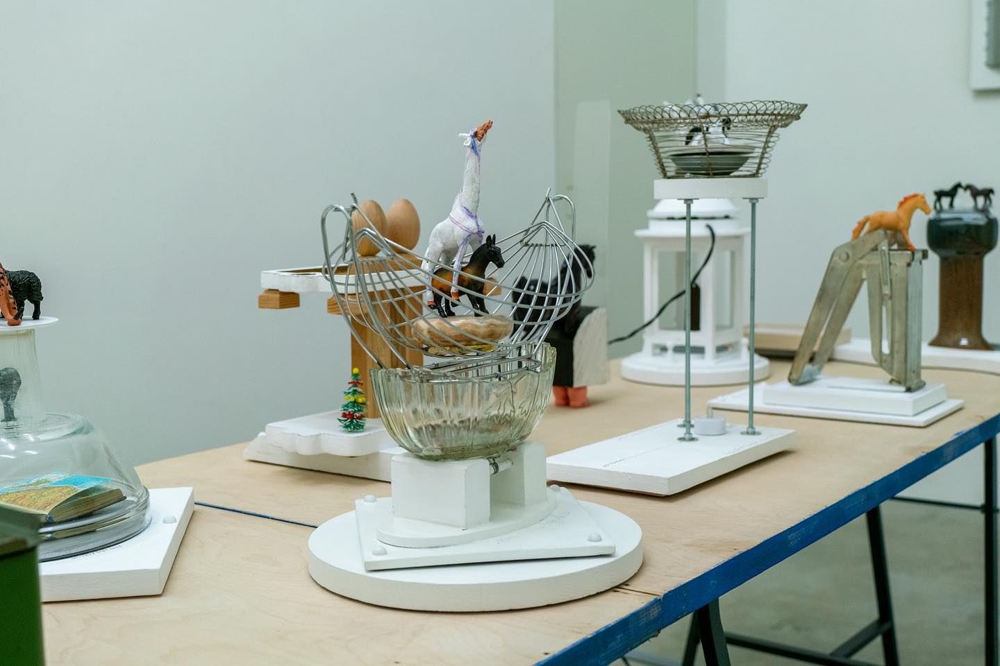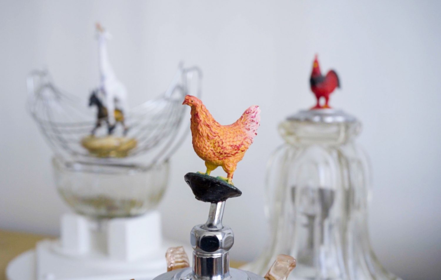 В този проект Лъчезар Бояджиев като че ли се опитва да отнеме тази демонична власт на паметника. Как? С много хумор (в противовес на монументалната сериозност), с много автобиографични истории (в противовес на идеологическия мит), с много лична уязвимост (в противовес на „вечните“ материали на монументалната пластика). Репрезентацията на личностите, на които паметниците на Бояджиев са посветени, е заменена от пластмасови фигурки на коне (предпочитан вид от автора), зебри, жирафи, тигри, овце, петли и кокошки. Композициите на всеки постамент са всъщност чудати бриколажи от домашни предмети, очевидно трупани с десетилетия, напоени с аромата на бита – салатиери, фруктиери и абажури от близките десетилетия, кантар – съветски дизайн, трошачки на ядки. Наблюдавайки крехките конструкции, човек има усещането, че всяко по-силно издишване ще разпадне композицията или всяко по-настойчиво търсене на причинно-следствени връзки ще загуби търсещия в лабиринта на автобиографичните разклонения.