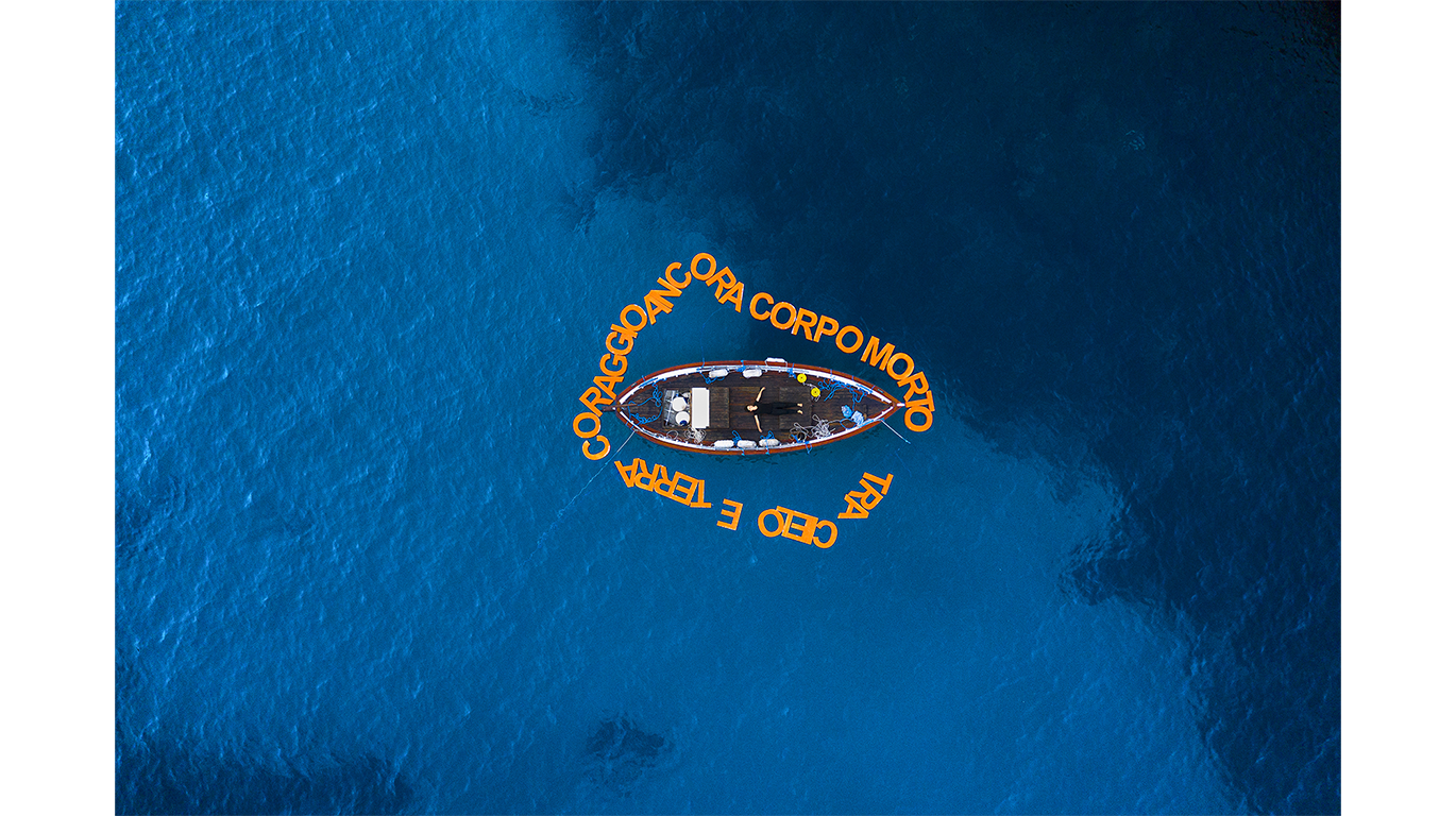Италианката Елена Белантони зачеква друг мъчителен аспект на миграцията – дебнещата смърт. Във видеото ѝ CORPOMORTO „мъртвото тяло“ от заглавието е колкото тежест за закотвяне, толкова и безжизнен корабокрушенец, недобрал се до европейския бряг. В десетминутния безмълвен филм авторката изкарва лодка в морето край Триказе (на крайчеца на „тока“ на Ботуша) и започва да подрежда около нея група едри плаващи букви. Камерата следи Белантони и под водата, а накрая се издига над цялото и четем: още кураж мъртво тяло между земята и небето. Ancora на италиански, с една смяна на ударението, се превръща от „още“ в „котва“.