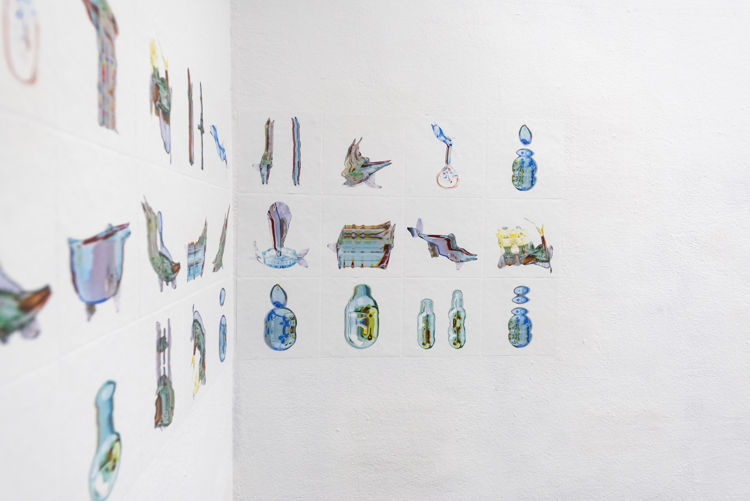 Историята на завода приключва интригуващо: „На 27 април 1998 г. „Булгаргаз“ ЕАД внезапно спира подаването на природен газ към завода. Официалната версия е, че към дружеството са натрупани множество дългове. Какво означава това за този 24-часов работен процес, в който пещите са били пълни с разтопена стъкломаса, готова за непрекъснато производство?“, пита авторката в текста на изложбата. „Не е имало време дружеството да мине отново на мазут. Около 700 тона стъкломаса е изстинала и е кристализирала в пещите. (…) Ваните, превърнали се в неизползваеми, са били разрушени, а стъклото е разбито на парчета.“ Оттам тръгва и една приятна художествена интерпретация, в която сканирани отпечатъци от тези парчета се прехвърлят в дигиталното пространство и с помощта на действието на движещата се ръка на Невена, техният облик се разтяга върху скенера, сякаш съвсем извън физическото пространство. Впоследствие изображенията са екстраполирани и представени като абстрактни рисунки, отново изпечени върху стъкло, докосвайки се по този начин обратно до своята изначална природа.