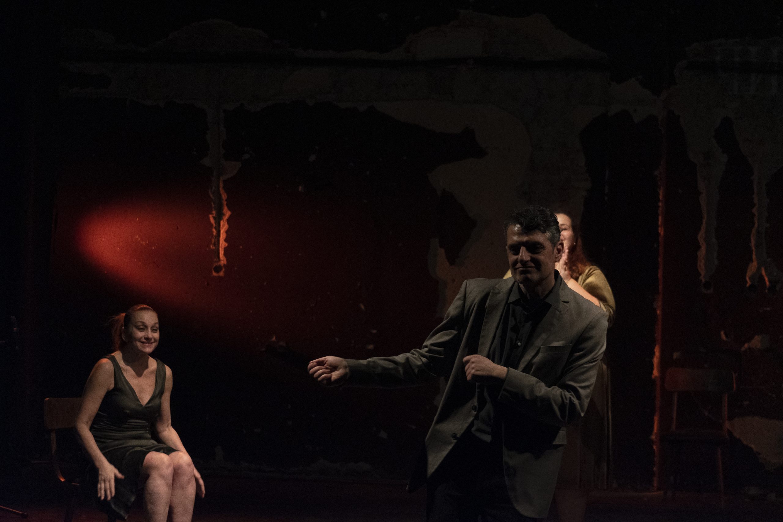 Двете актриси по-скоро не успяват да оформят емоционално трио на сцената с Велислав Павлов, който цялостно изглежда леко отстранен и някак си външен на тях. Причина за неговата отстраненост може да е и включването му на по-късен етап в репетициите, въпреки че това не се натрапва като драматургичен дефект. Той носи нужното равновесие и баланс в общата картина със своя образ на разсъждаващ над самотата човек. Неговите самоконтрол и успокояващ глас – глас на разума – имат почти лечебно свойство, особено насред емоционалното опустошение и обезсърчение.