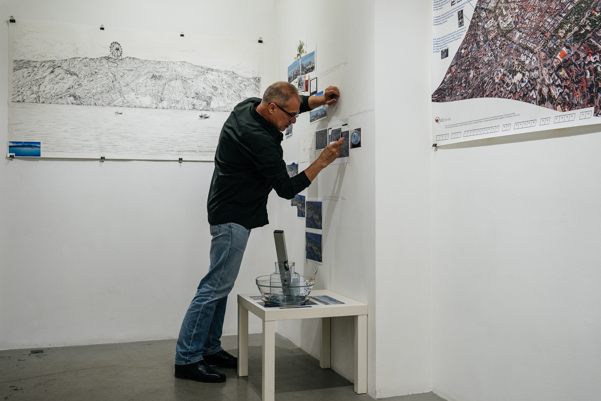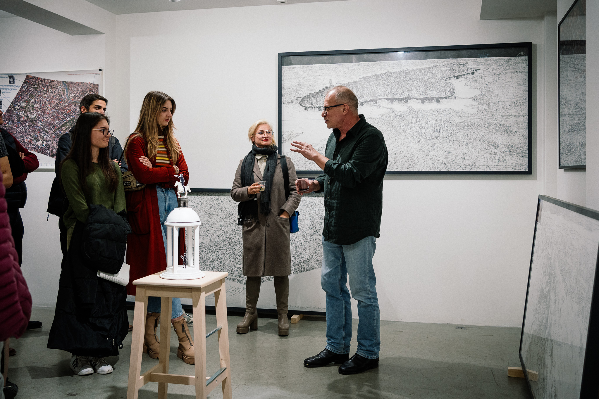 Изложбата представлява етап от дългогодишния проект „Утопични решения за дистопични градове“ – в серия от мащабни рисунки и дигитални колажи, наподобяващи дизайнерски скици и проектантски чертежи, авторът представя своите идеи за преустройство на онези градове, които са се оказали знакови топоними в неговия личен и професионален живот. Тези образи възникват от един неопределен, но вълнуващ опит – утопичното сънуване наяве, при което персоналните обсесии и кристализациите на творческия ум се взаимопроникват до неразличимост. Нещо повече, проектът организира възприемането на града като динамичен процес на едно социално въображаемо. Дали в съгласие или в разрез с първоначалната идея, в творбите действително е налице едно автентично хрумване, което надраства закачливите автофикции на индивидуалния опит и тласка към неизбродимите терени на колективното бленуване.