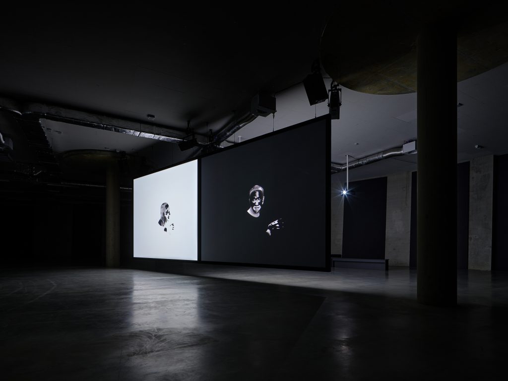 Същинската част на инсталацията се разгръща 2х2: два огромни висящи екрана почти докосват земята и когато от единия извира светлина, другият я поглъща; от другата им страна има други два екрана, които преобръщат динамиката на опакото си. Всичките четири квадрата показват една и съща сцена от първия озвучен филм, „Джаз певецът“ от 1927 г., в който Джаки Рабиновиц приема сценичното име Джак Робин в опит да замени бъдещето си на кантор в синагогата за това на джаз изпълнител на Бродуей. За целта обаче Джак трябва да се „маскира“ като чернокож и тъкмо това е сцената, избрана от Маккуин: гримирането с blackface зад кулисите. Първичният филмов материал е преработен с цел противоположно допълване: ако отляво имаме стандартната последователност на кадрите в негатив, то вдясно сцената се разгръща отзад напред, макар и да е в позитив. И в двата случая Ал Джонсън (в главната роля), намазвайки лицето си с черна боя, изчезва, щрих по щрих. Технологията, която Маккуин използва тук, за да редактира образа, обезличава героя в момента, в който той апроприира чернокожия вид, уж с цел да изрази „същинското“ си аз.