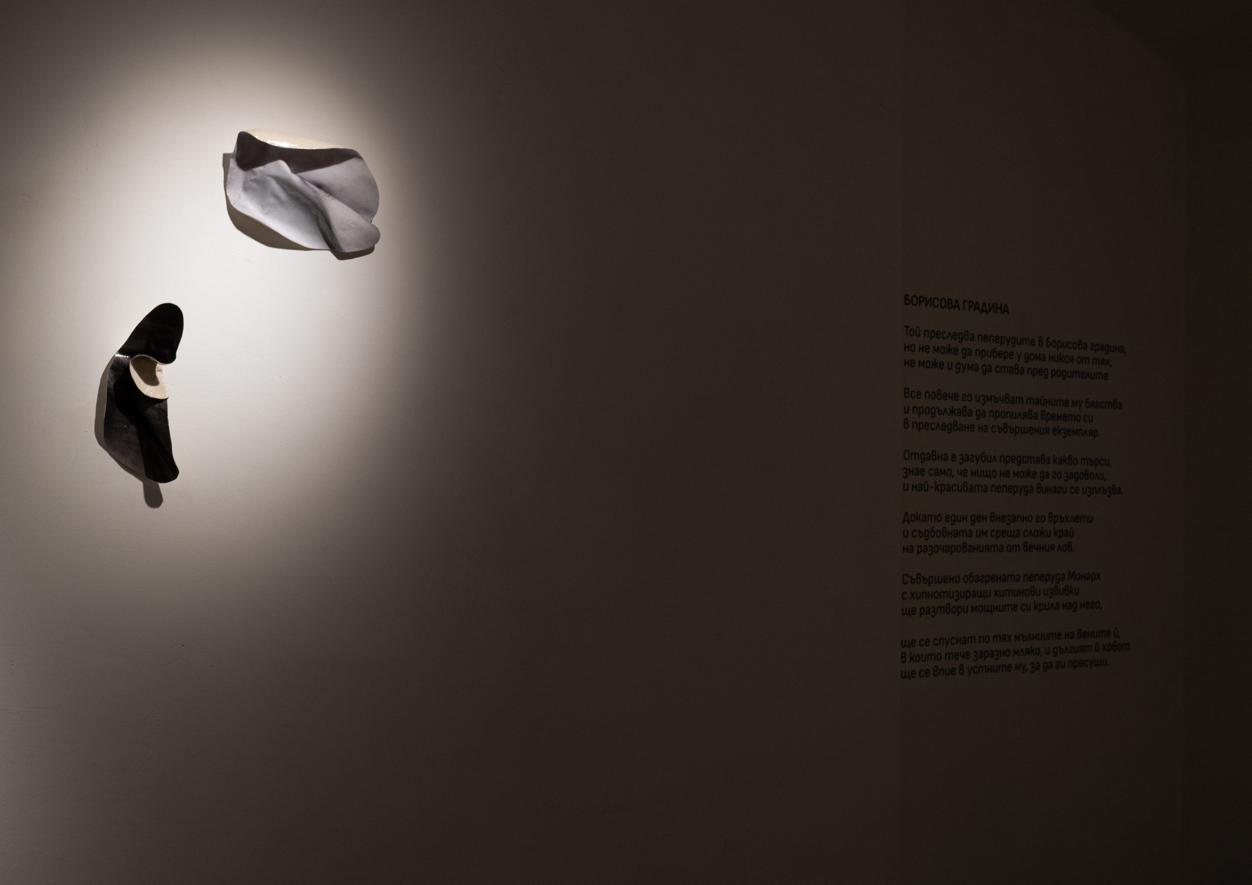 И въпреки това са деликатни и фини – като тайни, разположени по стените на тъмната галерия – и точно затова излъчват особена притегателност. Те прикриват, колкото разкриват. Това е съзнателна стратегия: отказ от пълна визия, жест на непоказване.