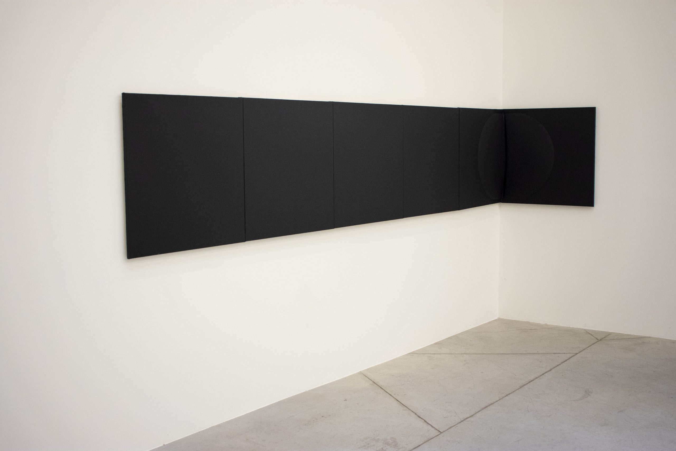 В поредица от няколко правоъгълни черни и привидно плоски повърхности от картон, окачени като картини, релефът съществува в парадоксални отношения с равнината. Триизмерни тела са принудително разгърнати в двуизмерни плоскости. Ясните следи от насилието отстъпват на меки, издуващи се форми, които сякаш отказват да бъдат сведени до единна равнина. Налице е напрежение, което поражда неразрешимо двусмислие – не става ясно дали фигурите са оплоскостени (опитомени) от силите на изглаждането или оказват съпротива като образуват нови триизмерни повърхности. Тази поредица се обвързва с друга, сходна на нея композиция: върху една от стените, серия от черни плоски квадрати образува линия, която преминава на съседна стена и образува ъгъл. При по-внимателно вглеждане обаче се оказва, че „ъгълът“ може да бъде разпознат единствено чрез принудата на интелектуалния навик – неговата неизбежна геометричност е взривена и на нейно място изпъкват две релефни полукълба с интимно разтворена цепка помежду им, която сякаш приканва зрителя временно да замени рационалното знание за правилните фигури с интервенцията на тактилното обследване. Окото ясно разпознава формата на ъгъла, но наред с нея разпознава и отсъствието на ъгъл като нещо друго. Тук ъгълът не следва да бъде установен от само себе си, а почувстван, тъй като той едновременно е и не е онова, което по правило е. И двете поредици настоятелно препращат към експериментите на Лучо Фонтана, където двуизмерното и триизмерното си оспорват правото над едно и също пространство.