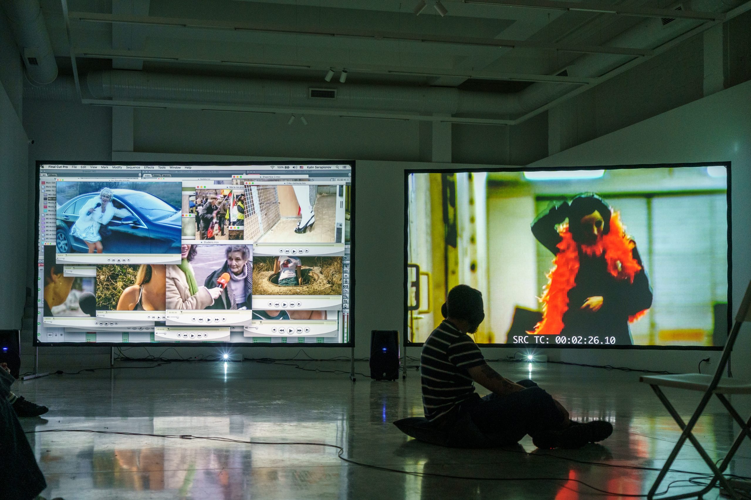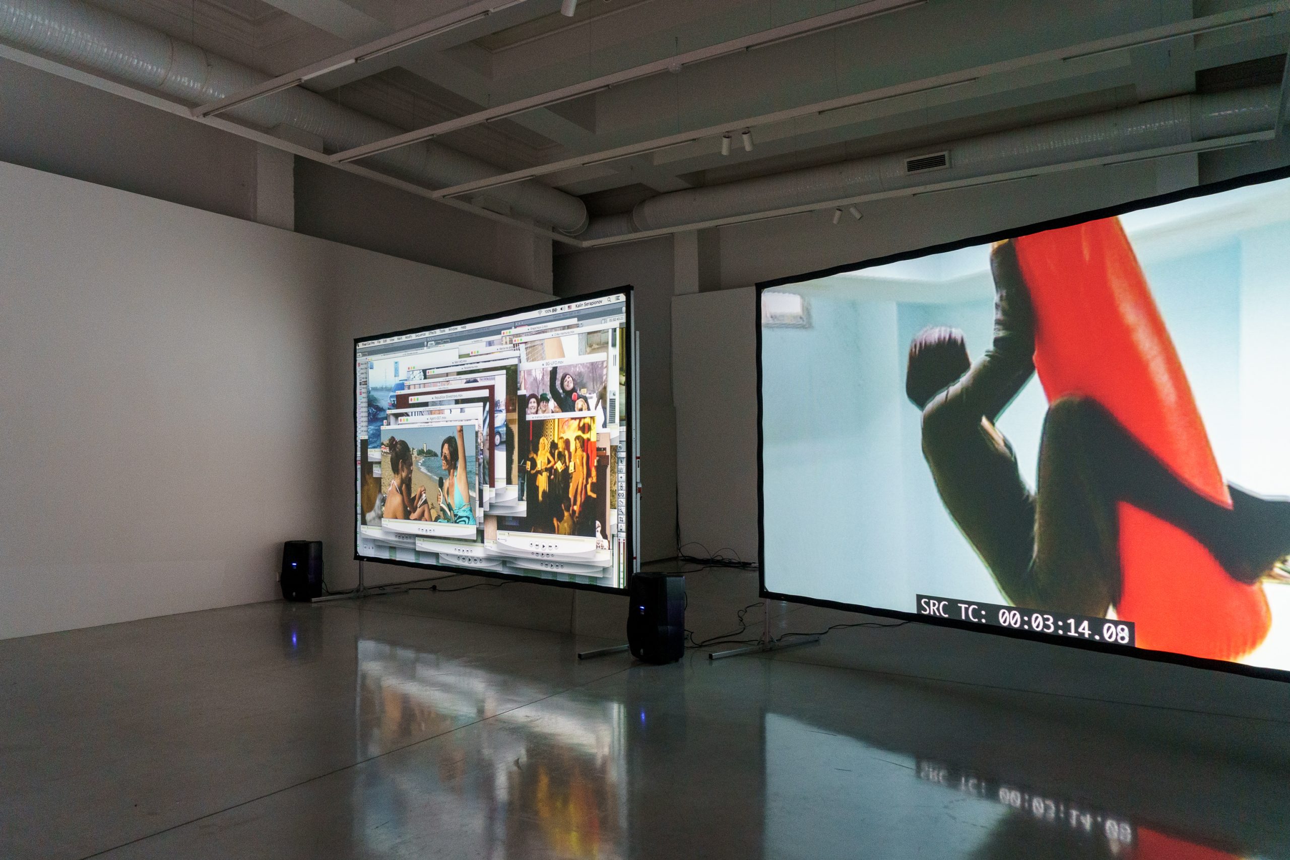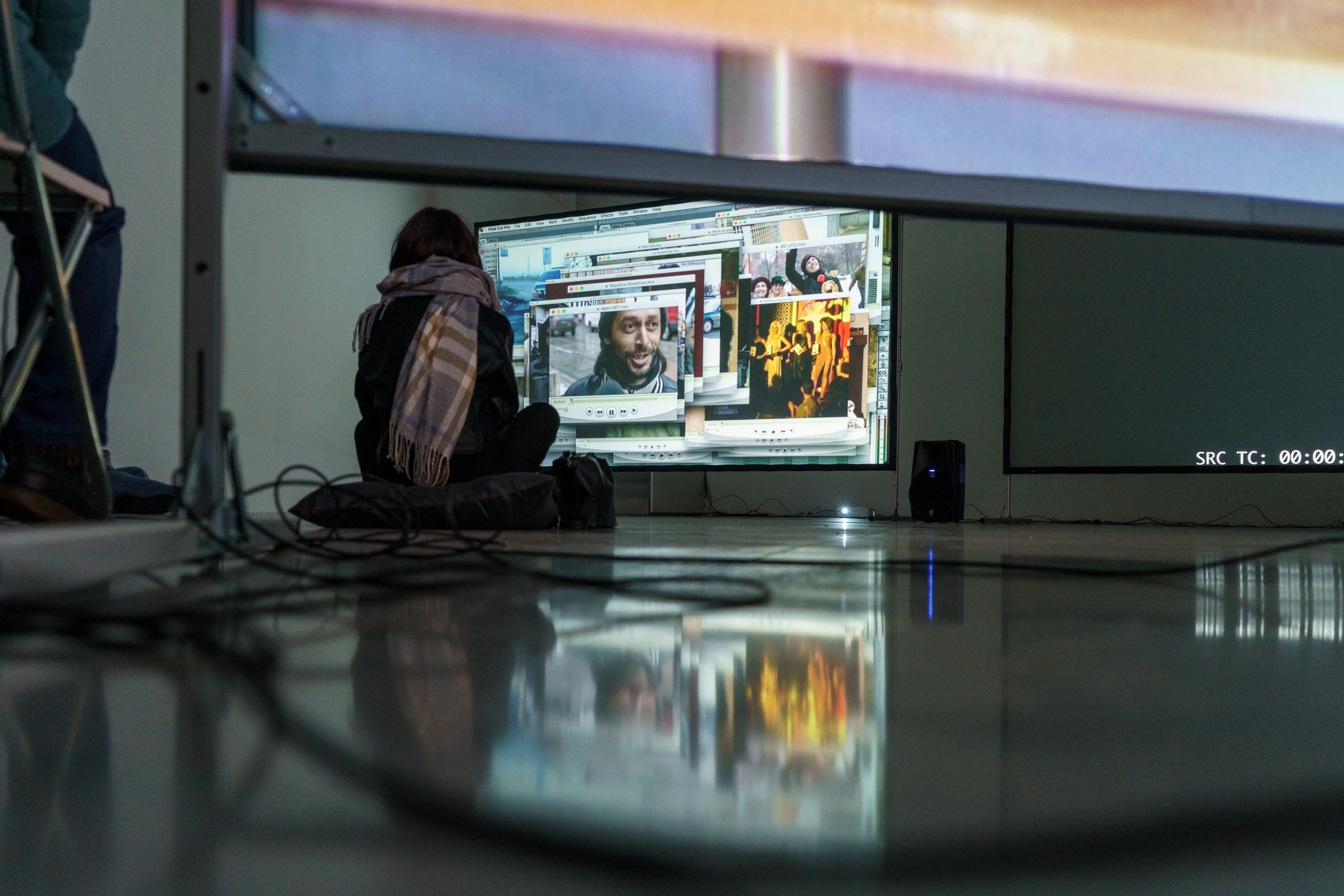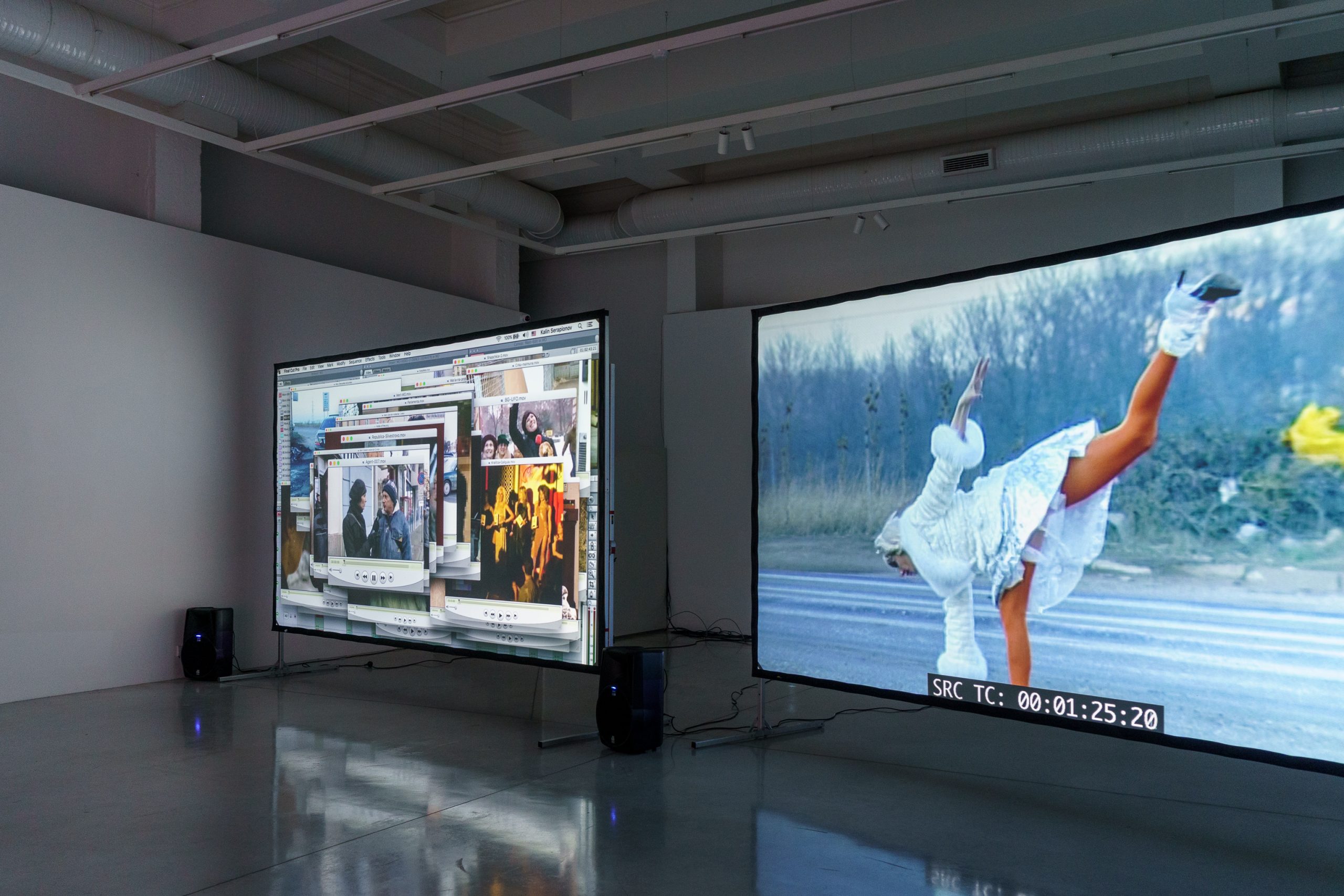 Мислех си за „триъгълника на тъгата“, или още „идиотския триъгълник“, по името на нашумелия филм на Рубен Йостлунд; разбира се – пряка връзка между двете няма; там става дума за телесно-душевното разкапване на безумно богатите, тук – за телесно-душевното разкапване на безумно бедните. Общото между двете е, че са безумни, първо, и второ, че са телесно-душевно разкапани. А ние къде сме? Седим някъде по средата, там, където ни е „отредено“ да бъдем в качеството ни на зрители, консуматори на култура и така нататък, на хора, на които констипацията е добре позната, защото навсякъде все така продължава да бъде леденостудено. Да, става дума за местоположението, за едно „къде си“, от което не можеш да избягаш „както и да си“: влизаш в галерията и се озоваваш срещу три екрана, разположени в триъгълна конфигурация. Ето защо се сетих за триъгълника на тъгата, тоест за идиотския триъгълник – хрумна ми докато гледах отстрани и се кикотех спорадично заедно с всички останали консуматори, приятели на авторите, роднини (винаги има роднини), интелигенти, професори и доценти (понякога има професори и доценти). Така в главата ми от нищото (или от всичкото) нахлу този израз – „идиотският триъгълник“, т.е. „триъгълникът на тъгата“, всъщност Бермудският триъгълник на настоящето, в който човек изчезва безследно, досущ както изчезнали безследно са и героите в „МО!“. Мислиш си, че всичко е приключило, че миналото е минало, че историята е в историята – а всичко всъщност се случва досами теб, всичко тепърва предстои. Докато пиша тези редове, например, до ушите ми достига далечен глас от включения в другата стая телевизор, който ми докладва, че някъде си (т.е. сравнително близко) глутница кучета изяли медицинска сестра. Нещата са твърде близки и заедно с това са безумно далечни, а безумието е тяхната близка далечност. Част от този опит е възсъздаден, перформативно осъществен в „МО!“