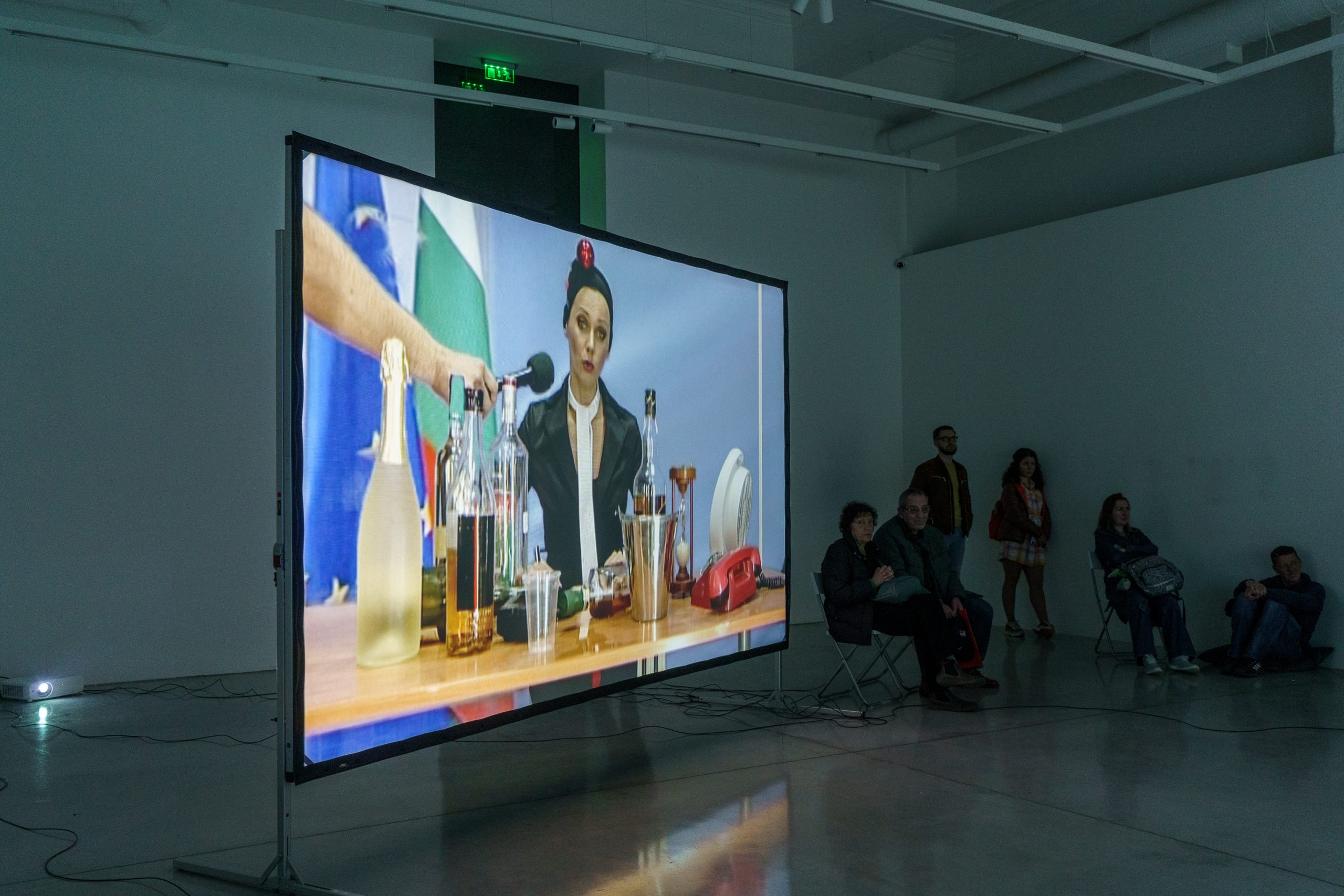 Ето го този опит: да застанеш в центъра на апарата, който е проектиран „с художествена цел“, тоест в центъра на структурата, експонирана в галерия на име „Структура“, в този център има меки сини възглавнички, прочее, за да ти е удобно на четирибуквието докато консумираш културата и разговаряш със себе си, макар че повечето хора, както е добре известно, всъщност са сводими до трибуквия и поради това обикновено не разговарят със себе си. На единия екран: гримаси от старите ленти; Мария Силвестър в месомелачката на живота; усмихната и усмихваща. И разбира се – тълпи изроди около нея. Човешки и спонтанни, стихийни: говорят не, ами творят – тяхната лудост е всепомитаща, носеща отрада, фабрична и възнаграждаваща; всички са тъкачки-многостаночнички във фабриката на своята лудост. Това навярно е „планът на времето“. На другия екран – тялото-Мария Силвестър крои планове из самото себе си, прави революции, уж катастрофи, делнични, смешни, упражнява се в света, бездумно и изпълнено с енергия до пръсване, през повечето време ужасно самотно: „тук няма нищо“, казах си аз, докато го гледах как се кикерчи ритмично, компулсивно, до втръсване във всевъзможни акробатики, които наивно очертават пътищата на една безизходност, на една не-среща, всъщност на една не-катастрофа; дали това тогава не е „планът на вечността“? Нищо не се случва, думи за изричане няма, нито дори повеи за съешаване с каквото и да било (а когато няма повеи за съешаване с каквото и да било, всичко става тъжно): само нейното тяло, което говори в своята самота, разположена отвъд всички думи („Ама тя е много пластична!“ – спонтанно дочут зад гърба ми глас, идващ от тяло, наметнато с коза и обуто с електриковозелени обувки на токчета). Чисто исторически така беше (спомням си), тази самота е фиксирана: когато Мария Силвестър копаеше чевръсто в дъното на София и търсеше там своите малки хора, запиляна сред техния кален мравуняк, казионната журналистика се занимаваше преобладаващо с това, с което и сега преобладаващо се занимава: да играе в миманса на мисирките, чевръсто обслужващи „Големите“, „Историята“, „Настоящето“. На третия екран, зад гърба на зрителя – пак същите сцени на ежедневно безумие из женския пазар, по улиците, потънали в боклуци, по стъгдите на това грехопаднало творение, където шестват в нескончаем парад кучета-агенти, папомобили, студени седесарки и кебапчета на име Фауст, но всичко е пак без думи, без звук, лишено от логос, от глас, само очертано в своята невъздържана до истерия пластика. Никой не те чува значи: колкото и да говориш, колкото и да се перчиш, да крещиш, да кълнеш, тук няма никой. Всички са другаде. Ти си сам. Ето това вероятно се нарича „кошмар на историята“. Значенията от трите плана се пресичат незабележимо – в центъра на желанието, на света, в единството на минало-настояще-бъдеще – там, където стоим ние.