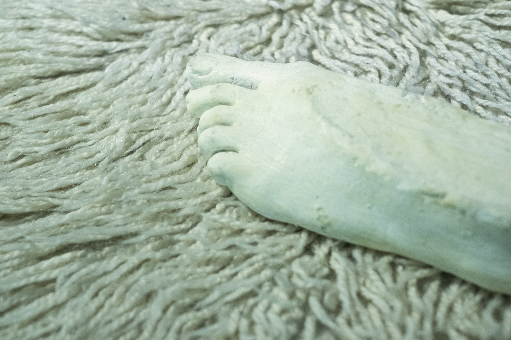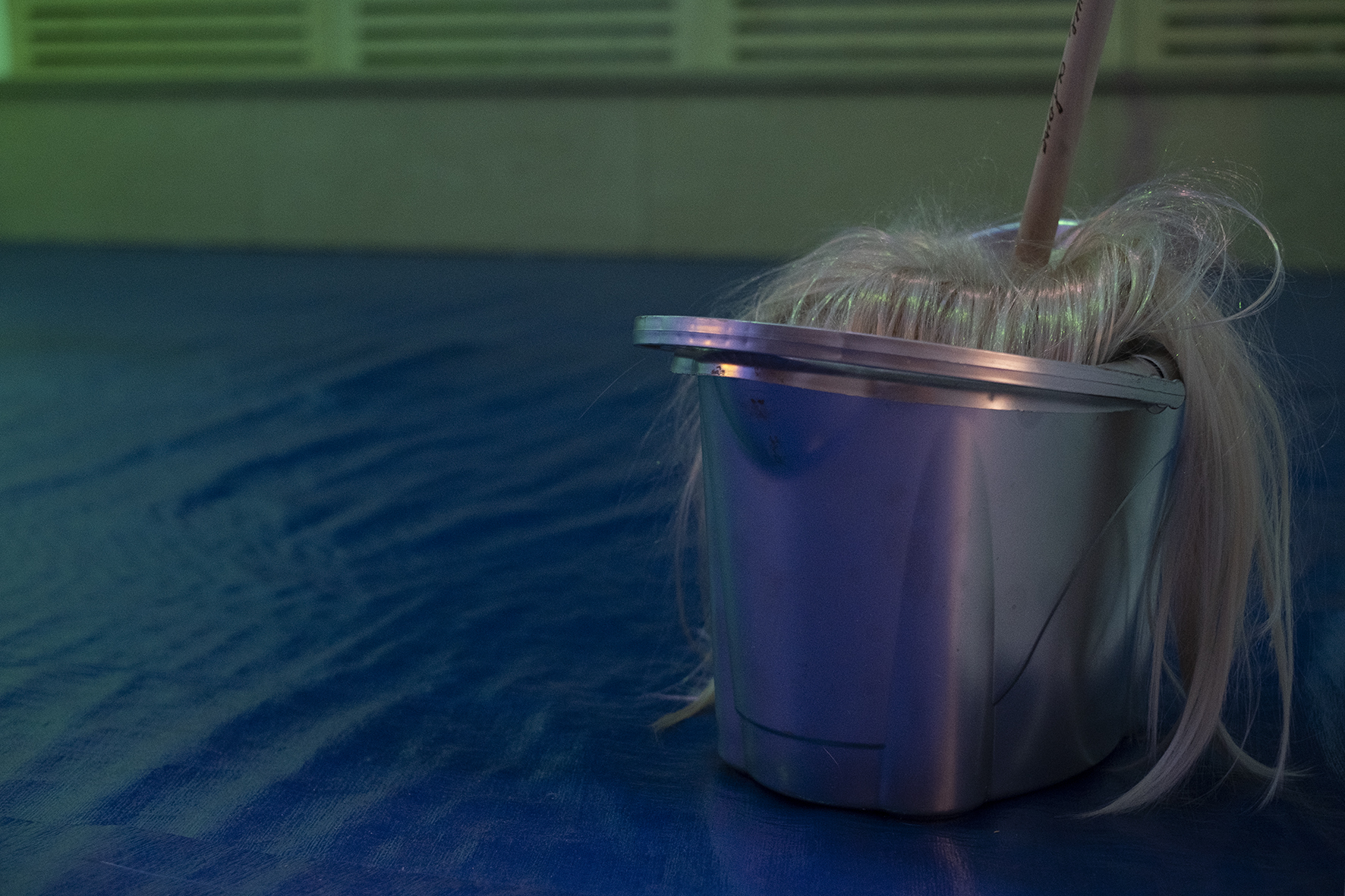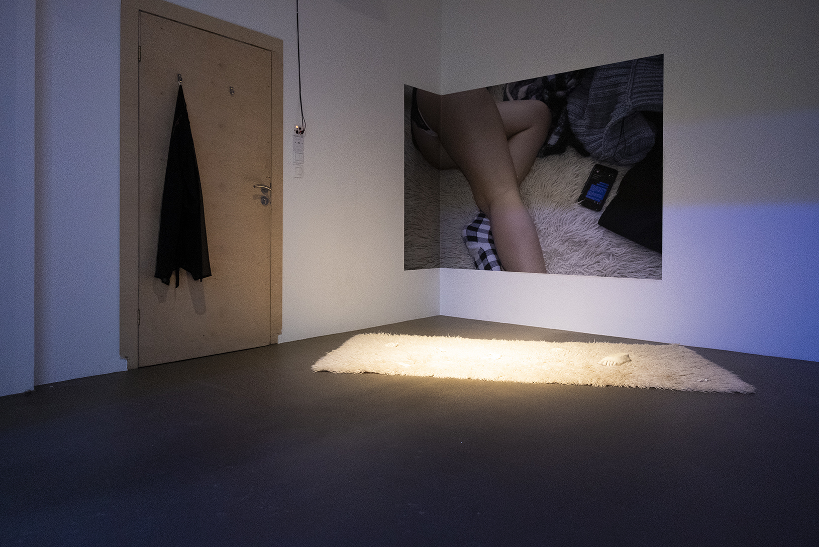 Друг важен елемент в изложбата е своеобразен домашен кът в един от ъглите на залата. Там има бял китеник с предмети отляти от гипс – използван кондом, цигари, над тях голяма фотография на фрагмент от тялото на художничката в нейната стая. На една врата е окачен и пеньоар. Бързо заснемане на домашна ситуация. Доста по-различно е присъствието на един обект в залата. То се намира точно до входната врата и няма директен автобиографичен смисъл. До стената е облегната четка за под, направена от руса перука. Работата се казва House Devil и е препратка към работа на френския художник Винсент Олине. Тук тя е в много по-реалистична версия от тази на Олине, а текстът “Leave me alone, don’t leave me alone”, изписан на дръжката на метлата, отново играе емоционално с идеята за еманципацията и социалните позиции на жената.
